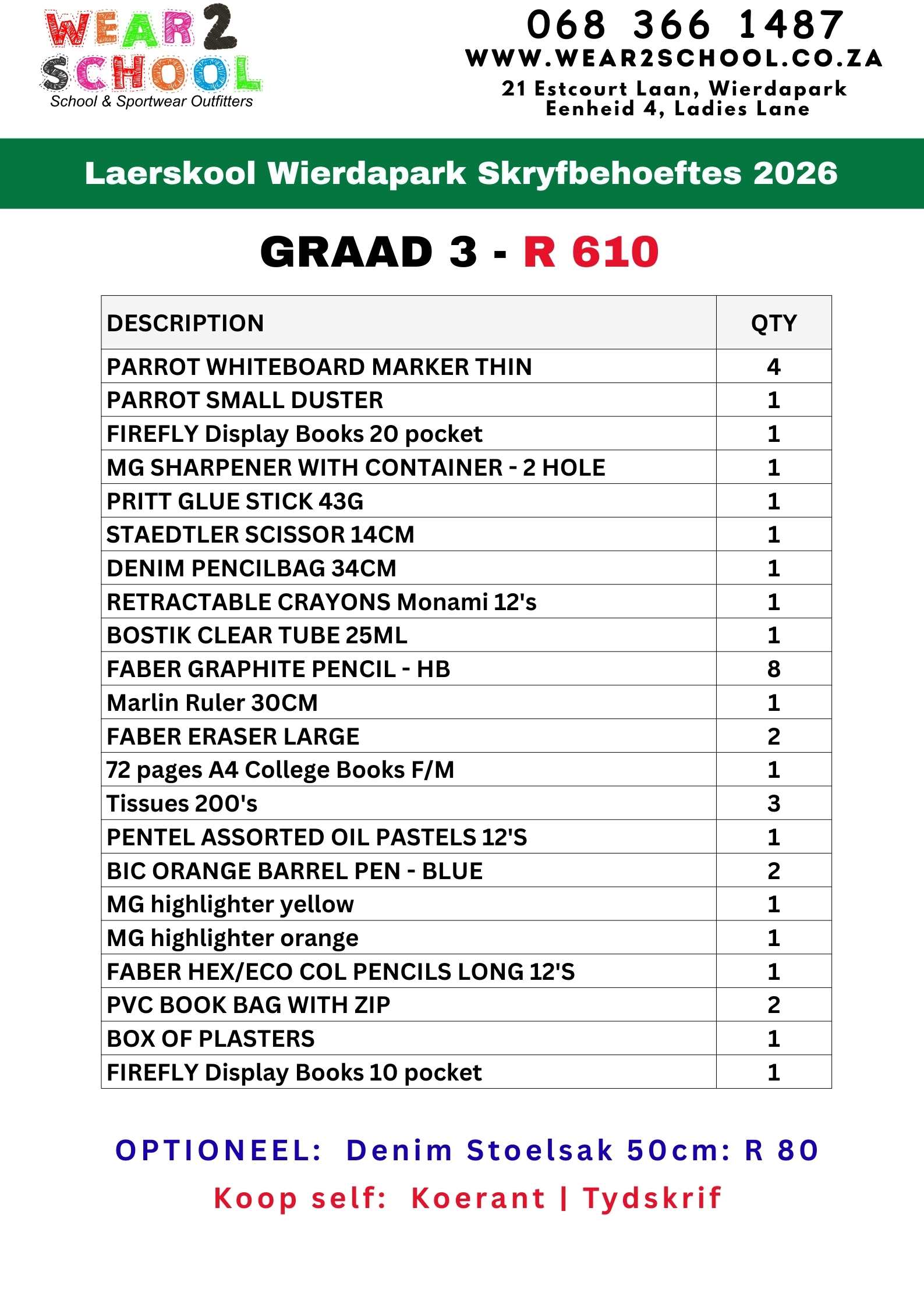 Wierdapark Graad 3 skryfbehoeftes pakket