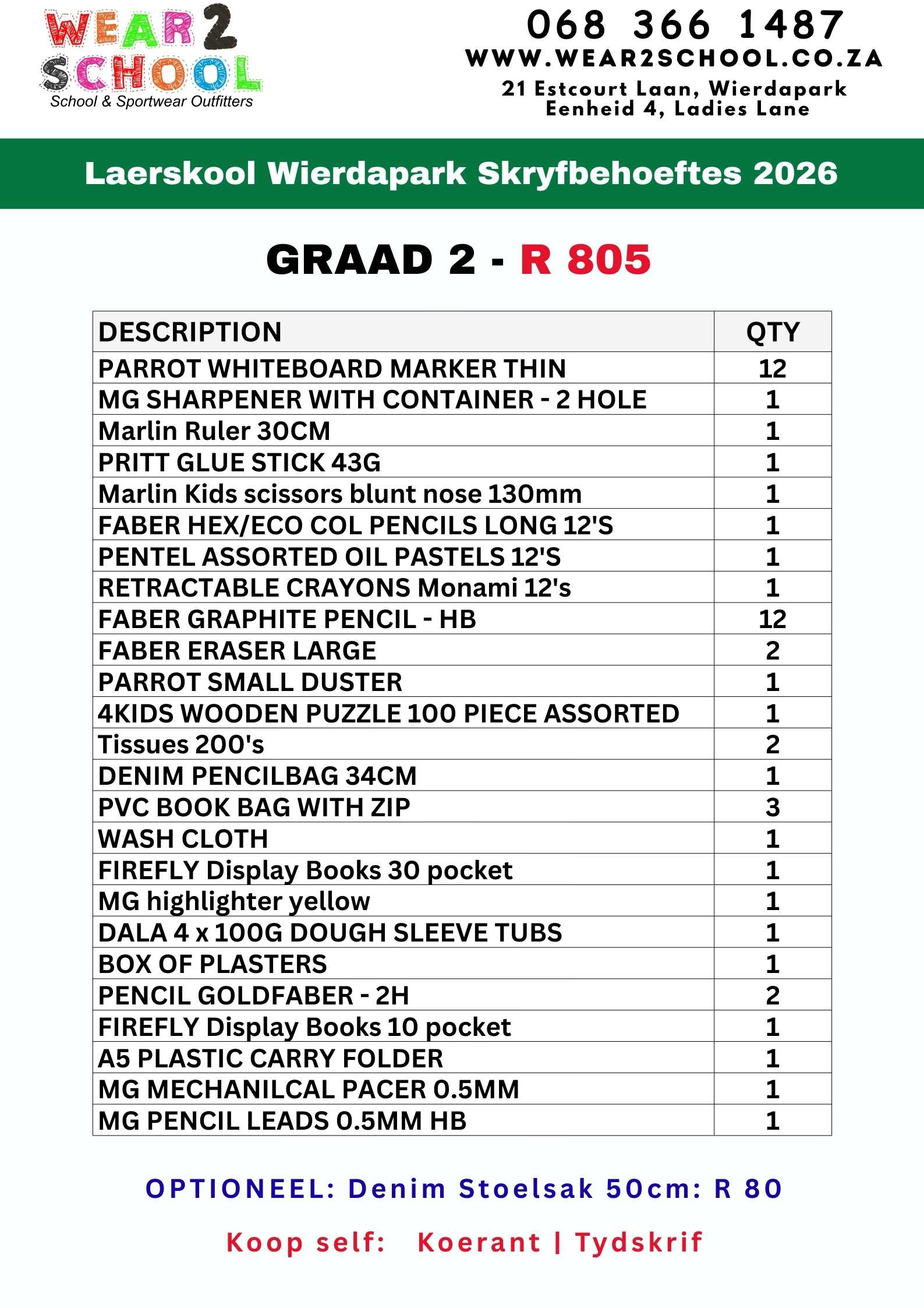 Wierdapark Graad 2 skryfbehoeftes pakket